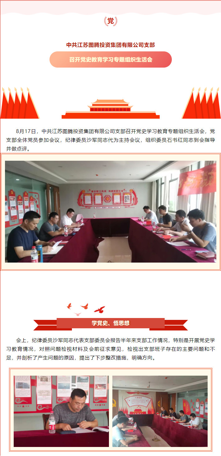中共江蘇圖騰投資集團有限公司支部召開黨史教育學習專題組織生活會