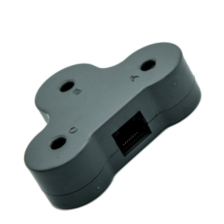 二次電流互感器如圖所示,用于電流取樣,將標準的一次電流互感器的二次電流(0~5A)變換成電壓信號(0~2V)。二次電流互感器采用穿心式,將一次電流互感器的次級線從中穿過,其與智能低壓無功補償裝置的連接使用接插件連接。二次電流互感器有三相式和分相式兩種,三相式用于三相無功控制,其中僅有B相電流互感器;分相式則用于分相無功控制或者三相、分相混合控制,其中有A、B、C三相電流互感器。