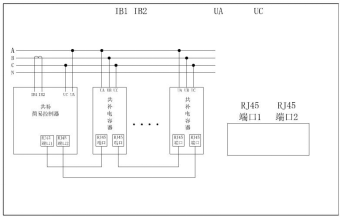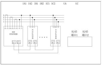 RJ45端口1與第一臺集成式低壓無功補償裝置的RJ45端口連接,RJ45端口2與最后一臺集成式低壓無功補償裝置的RJ45端口連接。