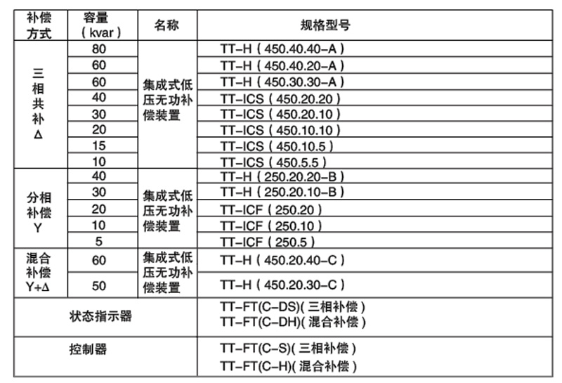 TT系列集成式低壓無功補償裝置產(chǎn)品選型表
